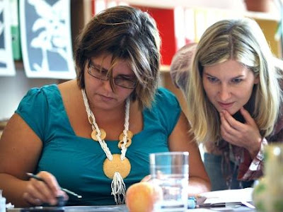 A kis csapat kíváncsian, nyitottan érkezett, úgyhogy előrebocsátom, nem volt velük nehéz dolgom.:-) Aztán a 4 nap alatt egyszerre fáradtunk el és frissültünk fel a résztvevőkkel együtt, akik nagyon lelkesen és elmélyülten alkottak minden reggeltől délutánig. Rácsodálkoztak arra, hogy amiről beszélgetünk, utána rögtön meg is tapasztalható, ki is próbálható, gyakorolható és hogy aztán szoktalan sebességgel mindennek látványos eredménye is van! Túlzás nélkül egy másik dimenzióba léptünk át így együtt és közben végig jól éreztük magunkat: mindenki ellazult, intenzíven átélte az “itt és most” örömét és gyönyörűeket alkotott.