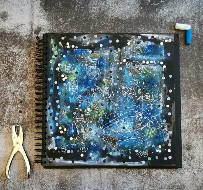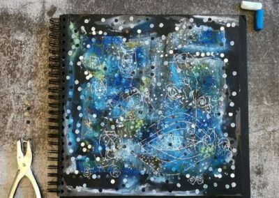 Még több alkotás: egy ehhez hasonló naplót fogunk készíteni együtt, lépésről-lépésre, sok-sok technikával és gyakorlattal, miközben “beszélgetünk” és a csoportunkban bármikor kérdezhetsz is.
