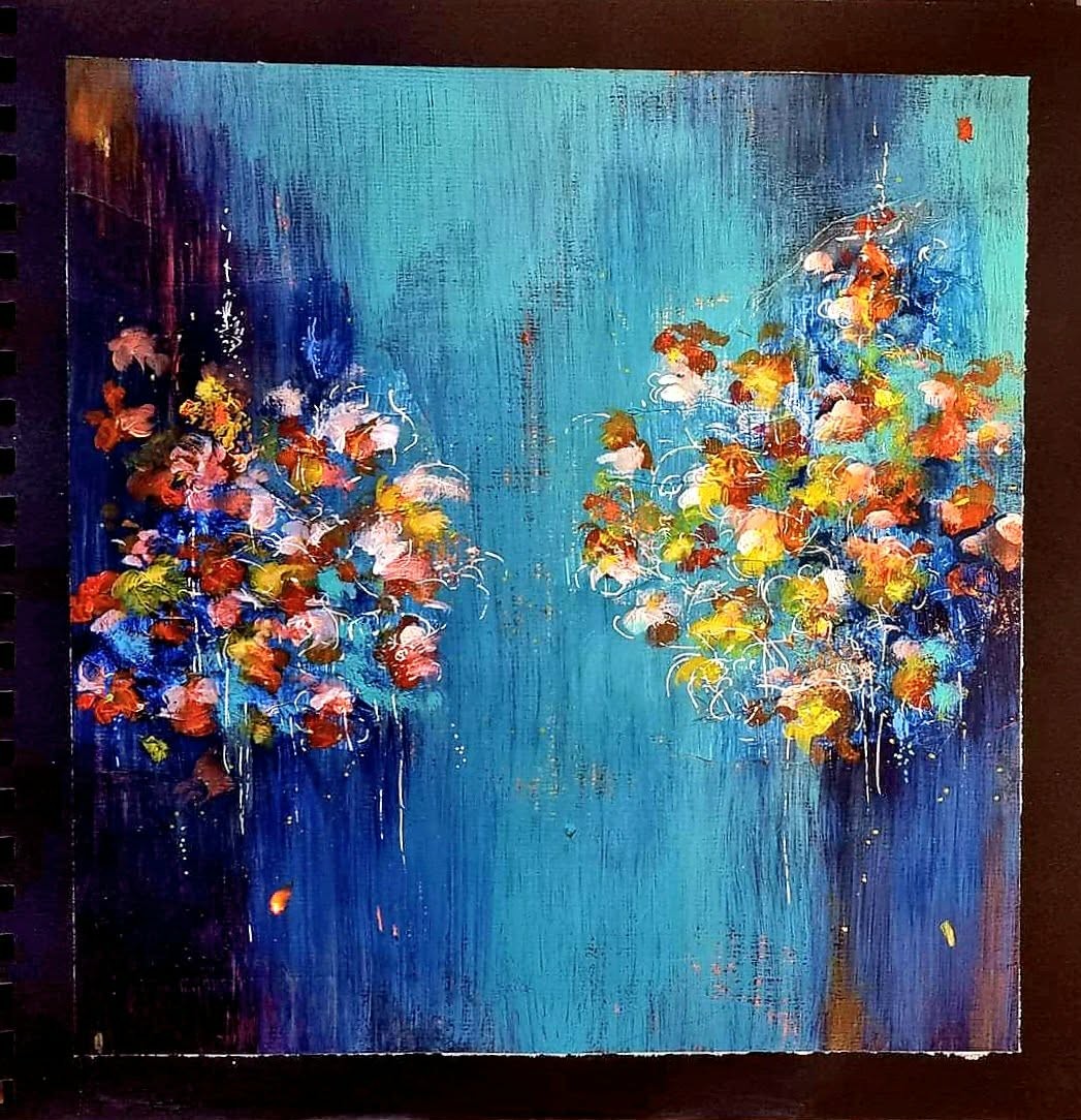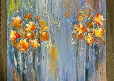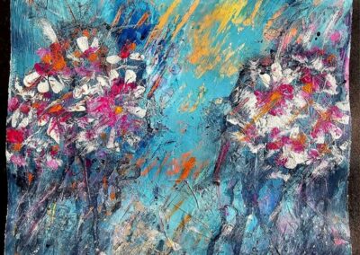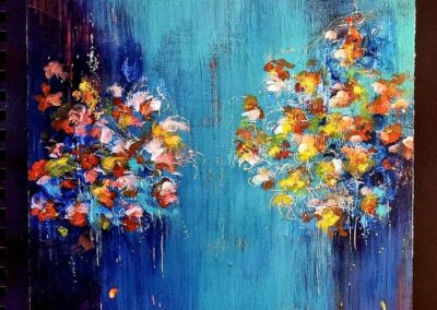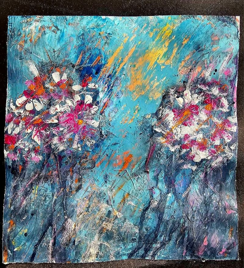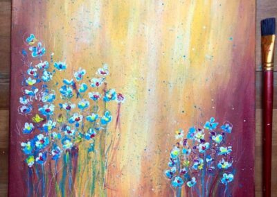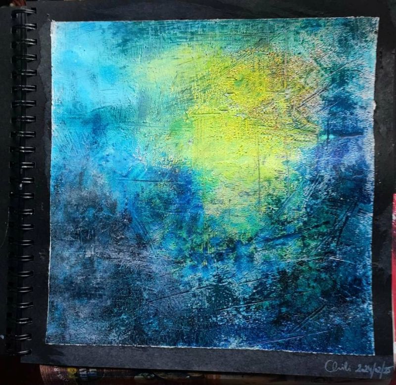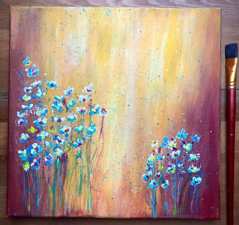 Eddig az akvarellezés volt az én világom. De mivel szeretek új dolgokat tanulni, Tinánál próbáltam már az absztrakt festést, illetve a vegyes technikás alkotást. A 12 hetes online program során beszippantott ez a műfaj is… Lakásfestés miatt kimaradt néhány alkalom, de utána 2 egész ‘Tina-napot’ tartottam, hogy pótoljak. :-)) Ezért, és a fizikai távolság miatt szeretem az online kurzusokat. Bátran ajánlom annak, aki technikai ismeretekre vágyik és gyakorolná az önkifejezést!
