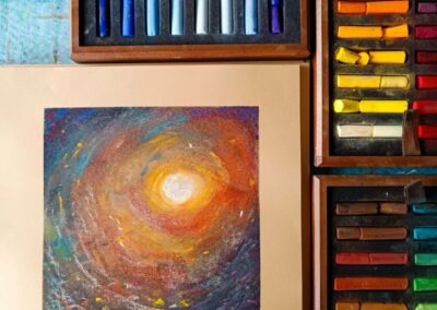 A program egyik fontos rétege a színek, formák, technikák és vizuális struktúrák tudatos használata. Azt tapasztaljuk meg, hogy különböző színvilágok és formák hogyan hatnak ránk, és hogyan tudjuk ezeket a saját képeinkben használni. Ezzel párhuzamosan minden alkalom egy belső állapothoz kapcsolódik. Ezért a programnak van egy fontos művészetterápiás hatása is: segít lelassulni, rendszerezni, és kapcsolatba kerülni a saját érzéseinkkel. Ez a program nem tanfolyam a klasszikus értelemben, hanem egy folyamat. Egy olyan heti rendszerességű program, amelyben megállhatsz, megpihenhetsz, alkothatsz, kísérletezhetsz.
